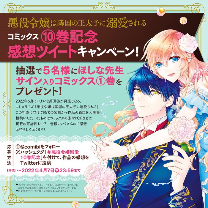 【~4月7日まで!】ほしな先生のサイン入りコミックスが当たる!『悪役令嬢は隣国の王太子に溺愛される』10巻記念 ハッシュタグ感想キャンペーン実施中!