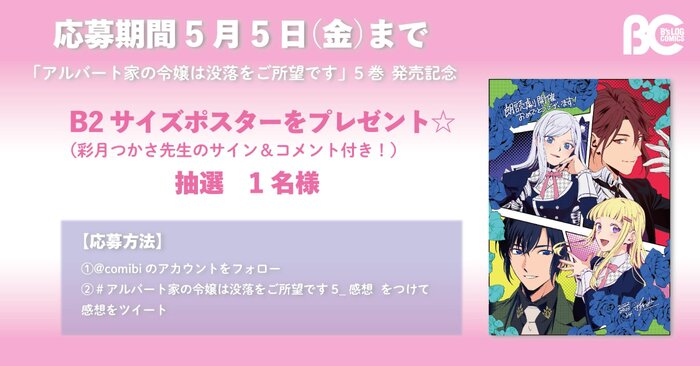 Twitterにて@comibiのアカウントをフォロー「アルバート家の令嬢は没落をご所望です5」の感想を、